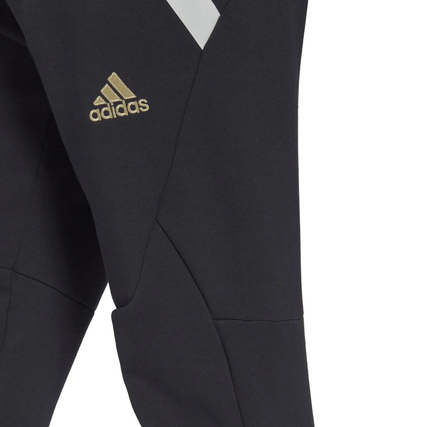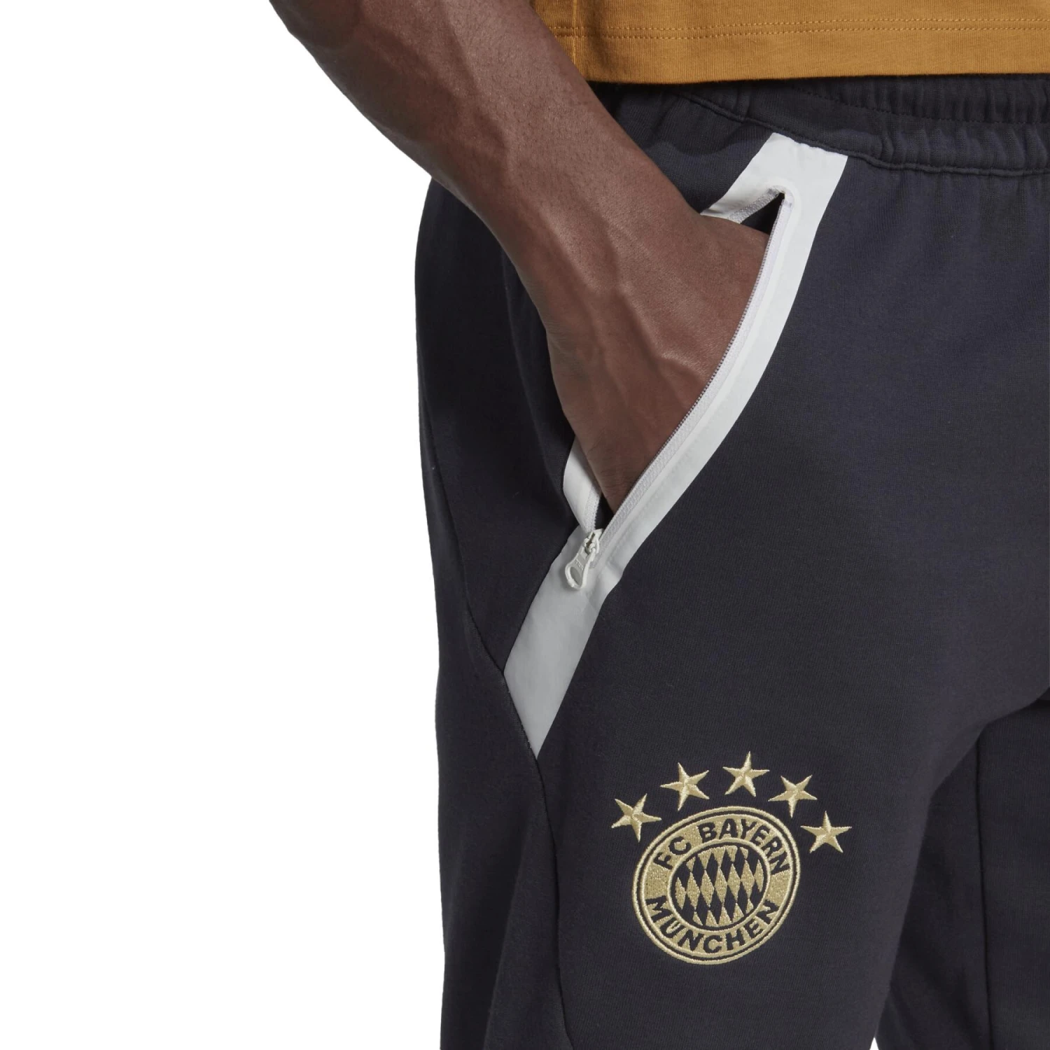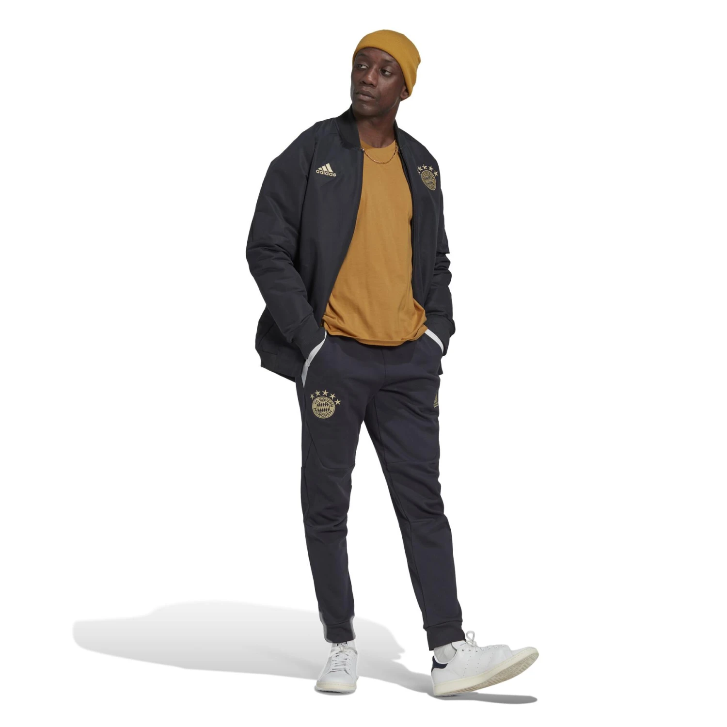 Bringen Sie Ihren FC Bayern-Stolz mit, wohin Sie auch gehen. Diese Reisehose adidas ist das, was Fußballspieler in Bussen und auf Flughäfen tragen, wenn sie auf Tour gehen. Der eng anliegende Schnitt und die spitz zulaufenden Beine sorgen dafür, dass Sie vor dem Anpfiff und nach dem Abpfiff einen wachen Eindruck machen. Teilweise aus recyceltem Inhalt aus Produktionsabfällen, z. B. Schnittresten, und Post-Consumer-Haushaltsabfällen hergestellt, um die größeren Umweltauswirkungen der Produktion von neuem Inhalt zu vermeiden.
