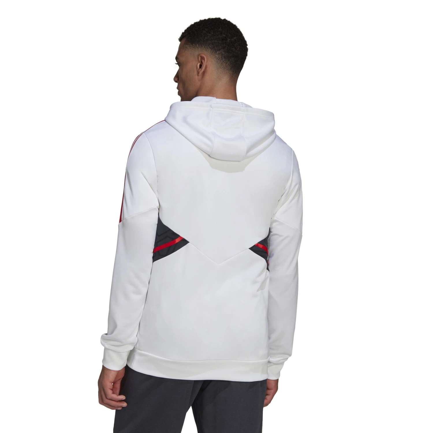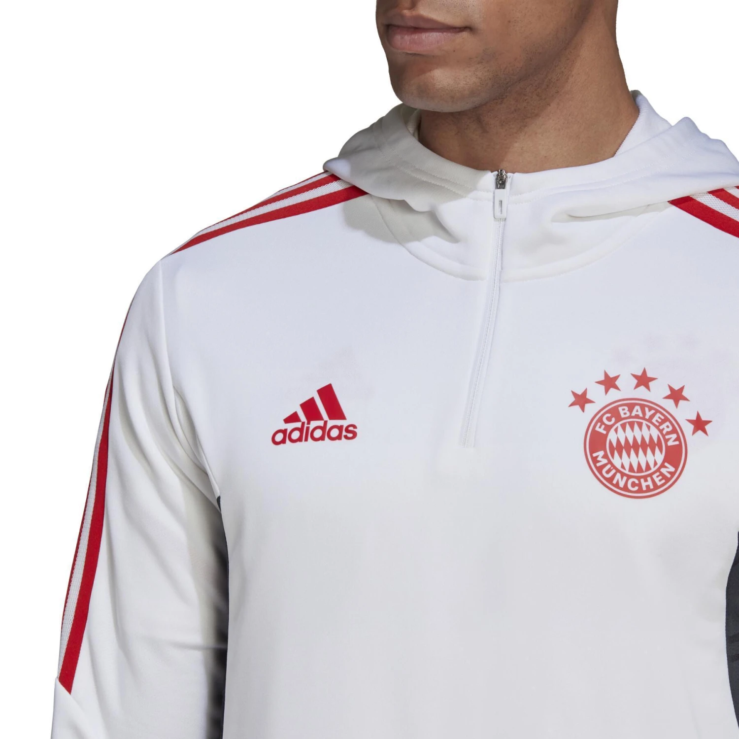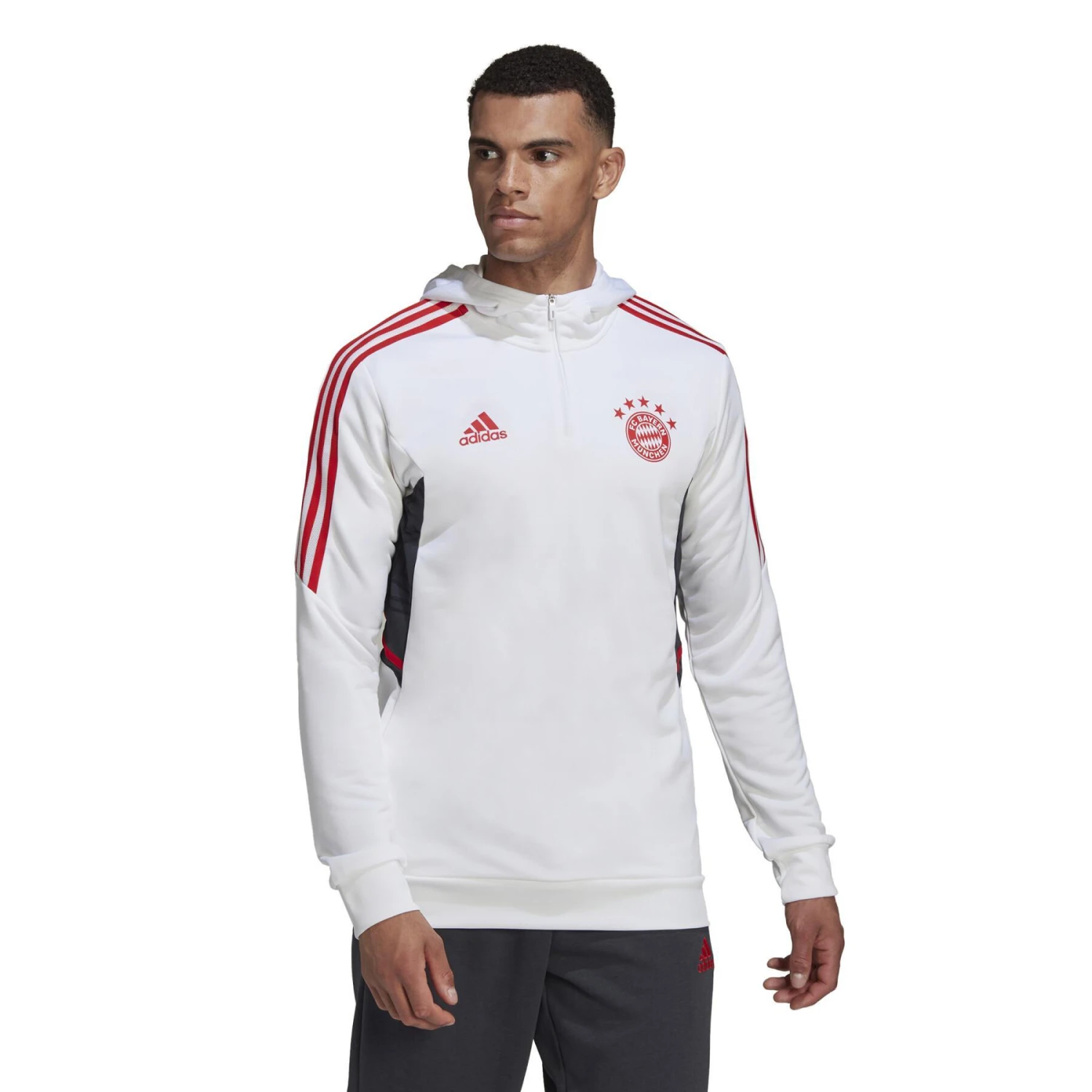 Ihr Talent scheint angeboren zu sein, aber um den deutschen Fußball zu dominieren, müssen sie eiserne Motivation an den Tag legen. Wenn die Spieler des FC Bayern sich zwischen den Trainingseinheiten bei kühlen Temperaturen aufwärmen müssen, ziehen sie diesen adidas Condivo 22 Kapuzenpullover an. Das weiche Fleece und die schweißableitende AEROREADY-Technologie sorgen für einen überragenden Tragekomfort. Dank des Viertelreißverschlusses kannst du den Hoodie schnell ausziehen, wenn die Action losgeht.