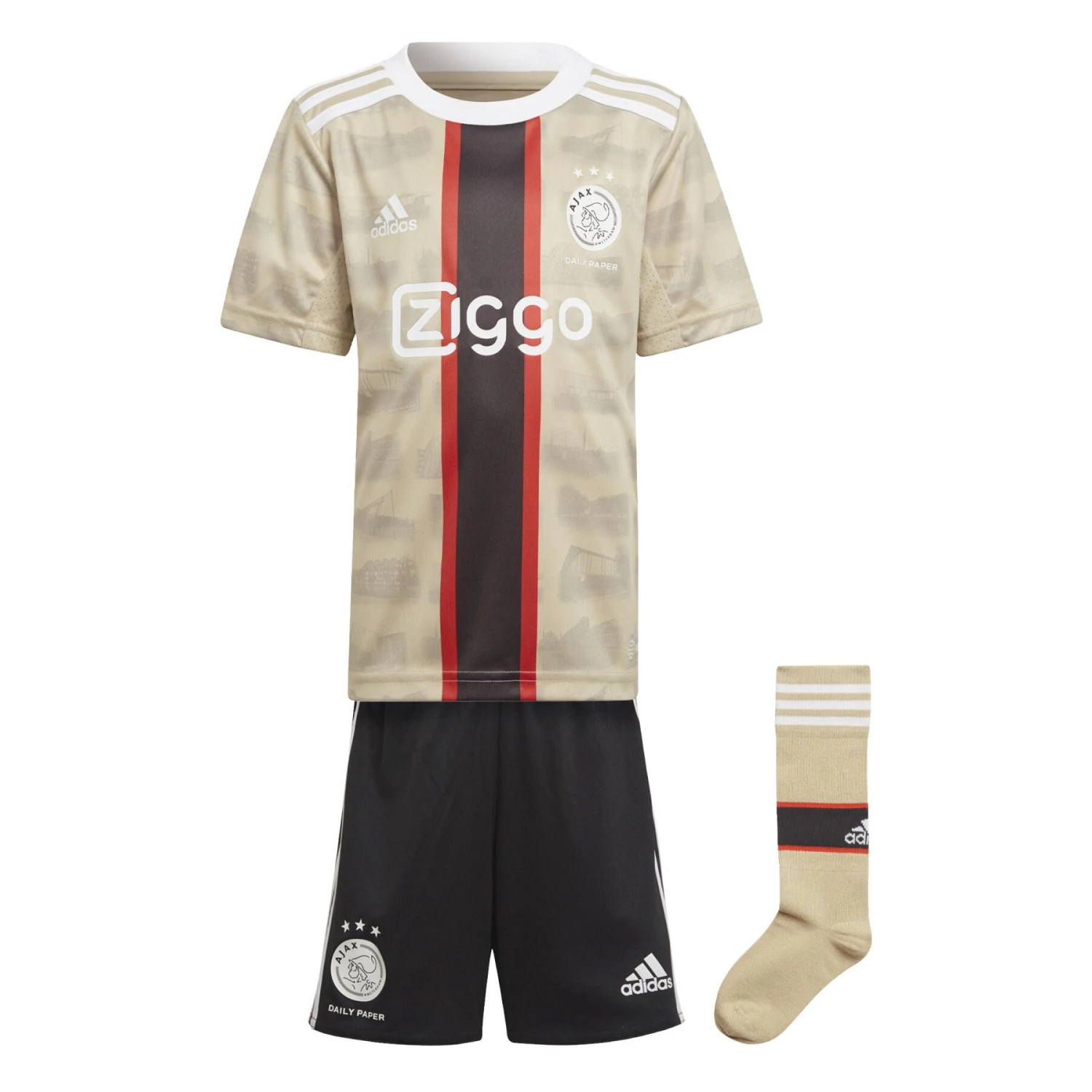 Wir haben uns mit der Amsterdamer Modemarke Daily Paper zusammengetan, um dieses dritte Mini-Set adidas Ajax Amsterdam für Kinder zu entwerfen. Der vertikale Streifen greift die Farben der Stadtflagge und die Silhouetten der berühmten Straßenfußballplätze auf. Die Shorts und die Socken vervollständigen den Look. Dank des AEROREADY-Feuchtigkeitstransports fühlen sie sich auf und neben dem Platz wohl.Hergestellt aus einer Reihe von recycelten Materialien und mindestens 60% recyceltem Inhalt, ist dieses Produkt eine unserer Lösungen, die helfen, Plastikmüll zu stoppen.Reguläre Passform