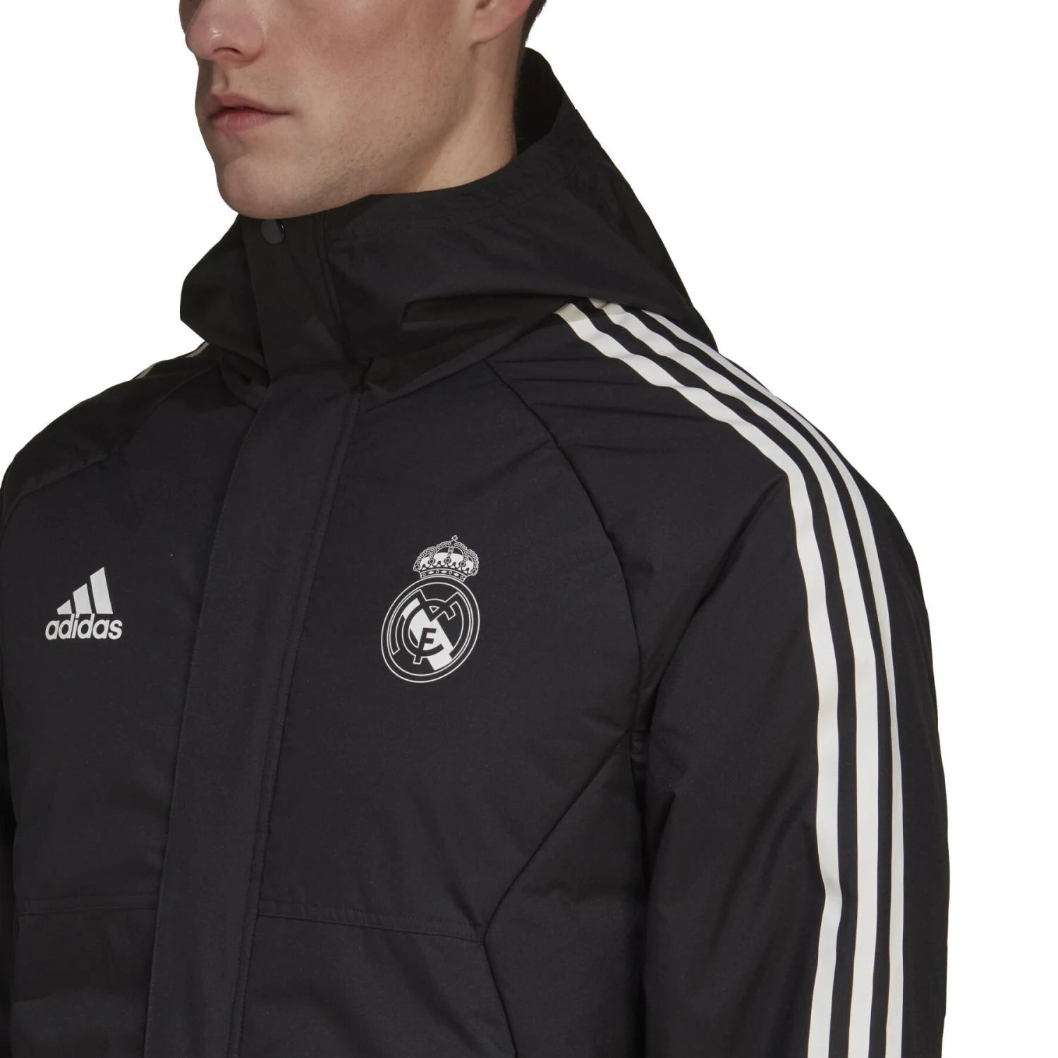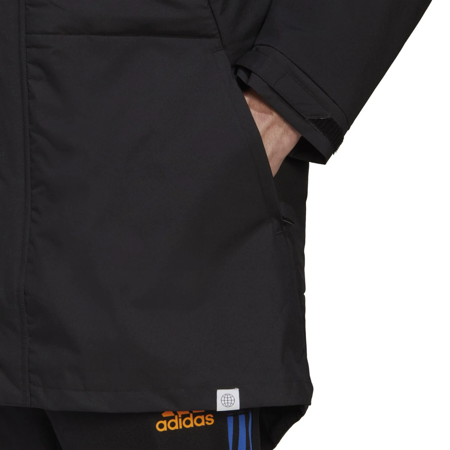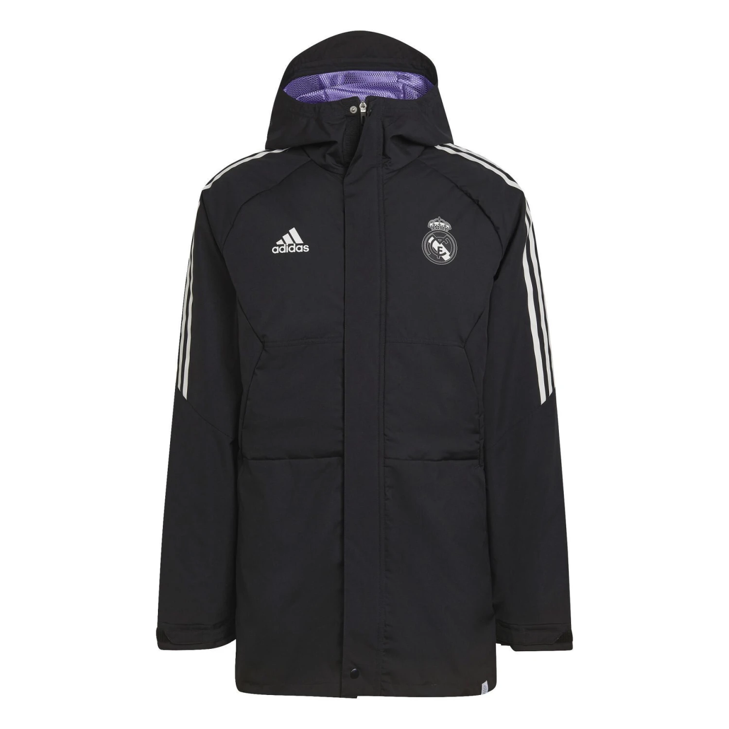 Wenn von dir erwartet wird, dass du auf dem Spielfeld alles gibst, muss auch deine Kleidung mithalten können. Dieser Fußballparka adidas aus der Condivo 22-Trainingsserie von Real Madrid ist lang geschnitten und hat einen längeren Rückenteil, damit du ihn bei kaltem Wetter über deiner Kleidung tragen kannst. Seine Polyesterfüllung hält dich warm, bis du dich in Bewegung setzt.Aus recycelten Materialien hergestellt und mit einem Anteil von mindestens 60 % an recycelten Materialien ist dieses Produkt nur eine unserer Lösungen zur Bekämpfung von Plastikmüll. Standardschnitt.