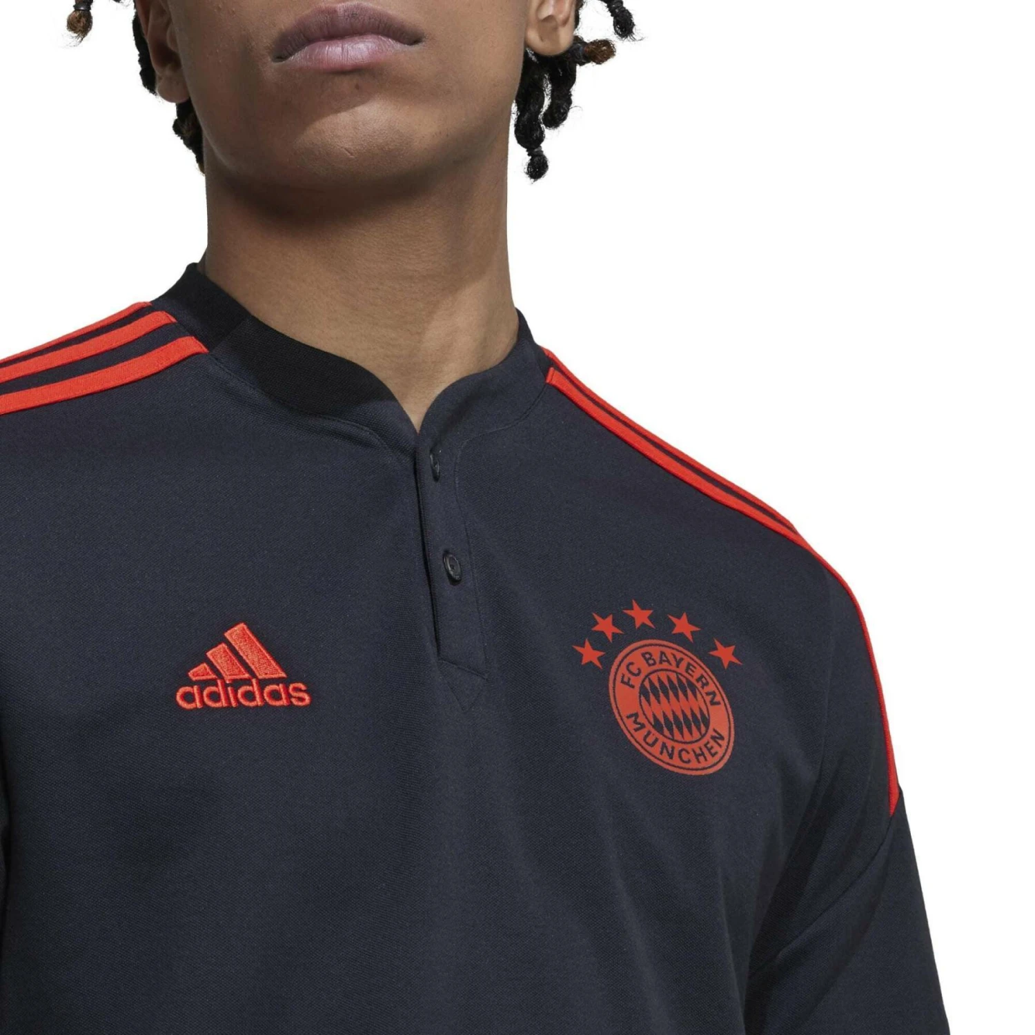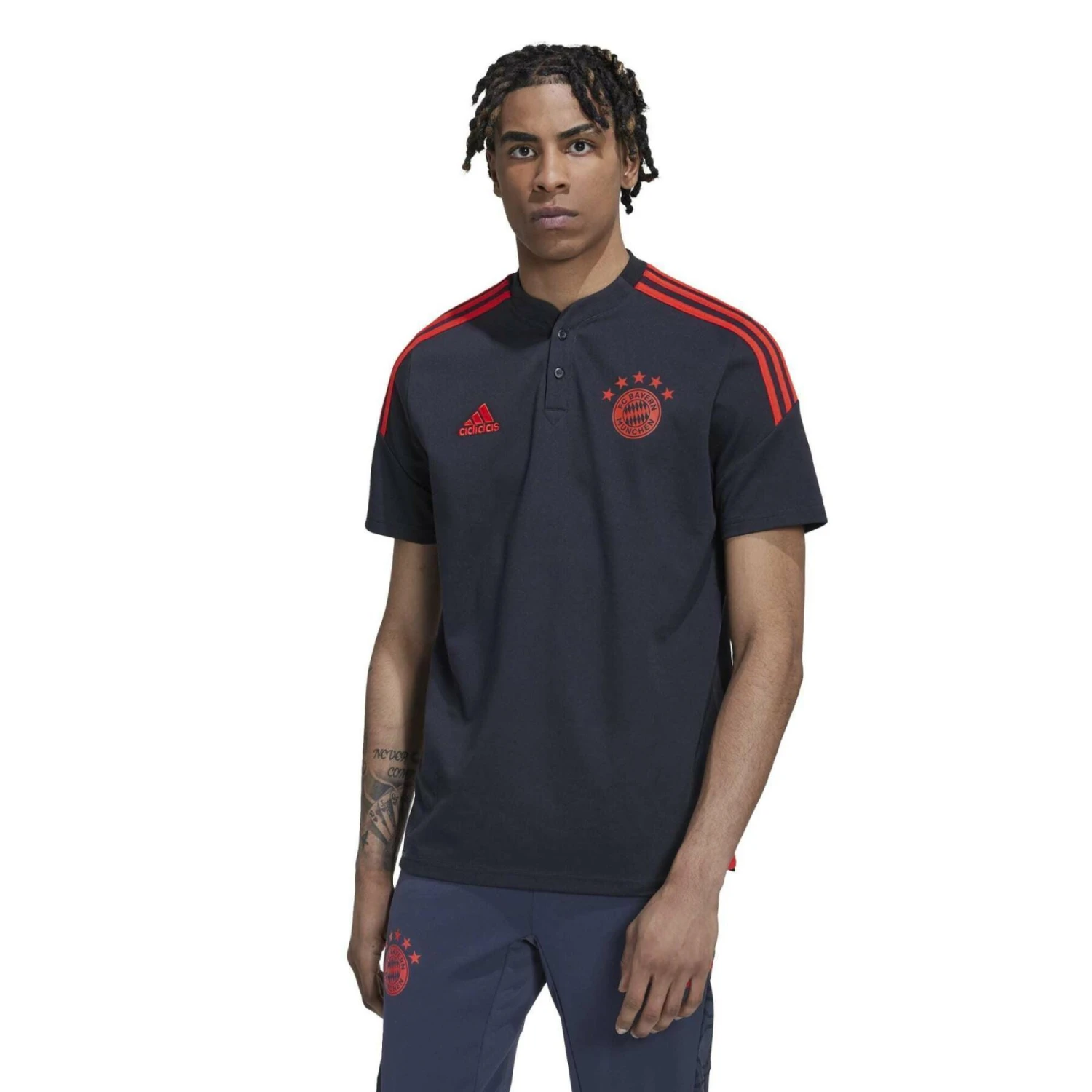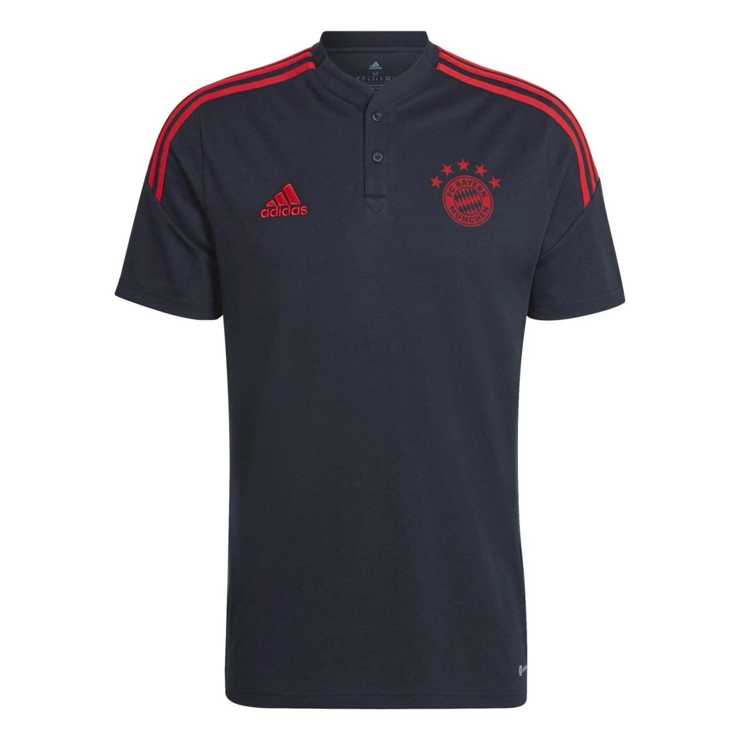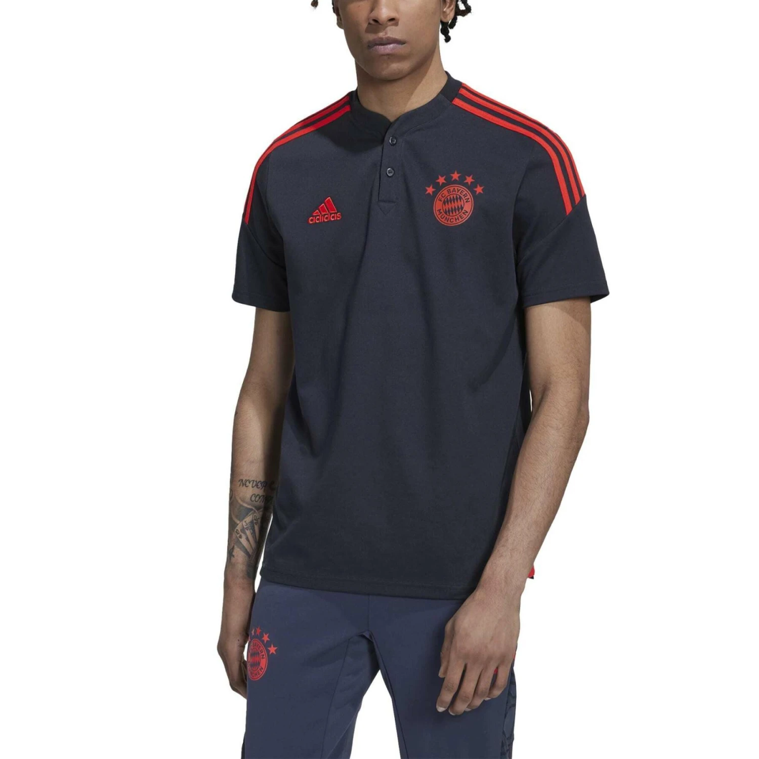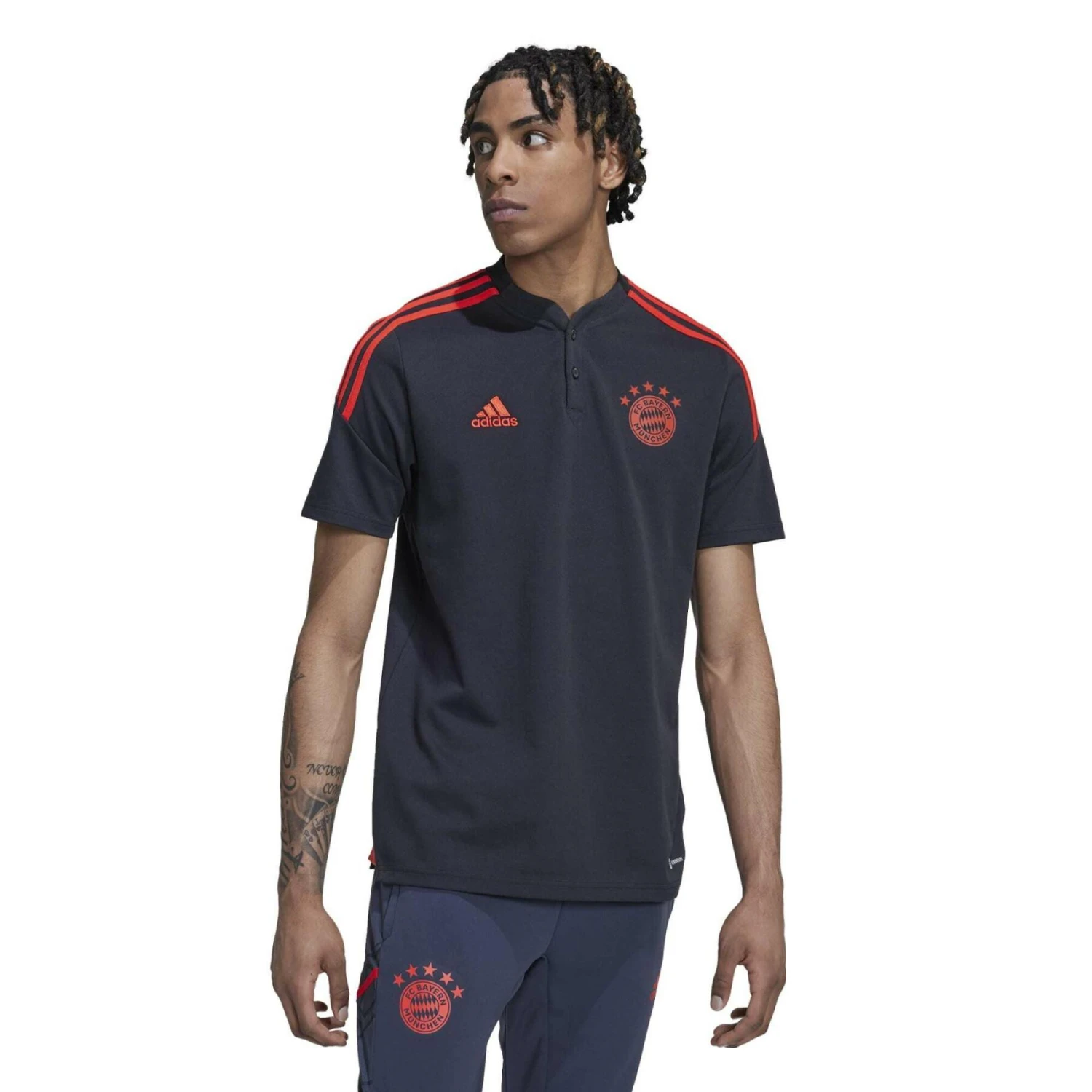 Wenn die Spieler des FC Bayern durch die Tür der Umkleidekabinen im Trainingskomplex des Vereins treten, erwartet sie ihr Trainingspaket adidas. Dieses Condivo 22 Poloshirt bietet ihnen eine attraktive Option, die sie sich vor dem Ausgehen überziehen können. Mit seinem gerippten Henley-Kragen und dem heiß übertragenen Vereinsabzeichen hebt es sich von der Masse ab. Teilweise aus recyceltem Inhalt hergestellt, der aus Produktionsabfällen, z. B. Schnittabfällen und Post-Consumer-Haushaltsabfällen, erzeugt wurde, um die größeren Umweltauswirkungen der Produktion von neuem Inhalt zu vermeiden.