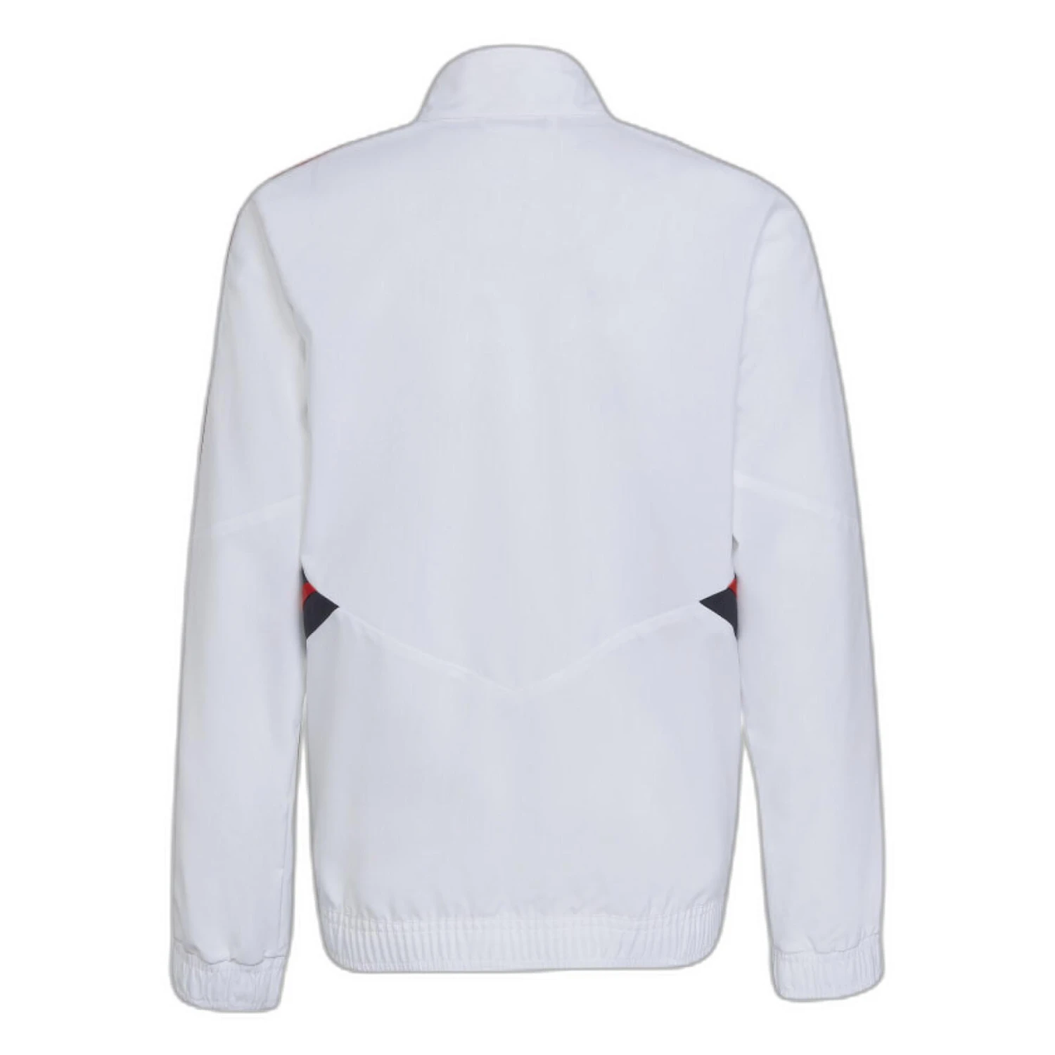 Ihre Einheit auf dem Spielfeld spiegelt sich im polierten Silber der Trophäen wider, die sie gewonnen haben. Diese Fußballjacke adidas ermöglicht es der Mannschaft des FC Bayern, auch außerhalb des Spielfelds denselben Zusammenhalt zu zeigen. Sie ist mit einem thermisch verklebten Abzeichen verziert, das für Leichtigkeit sorgt. Diese Juniorenversion ist mit der schweißableitenden AEROREADY-Technologie ausgestattet, die dir den ganzen Tag lang maximalen Komfort bietet.Hergestellt aus 100 % recycelten Materialien, ist dieses Produkt nur eine unserer Lösungen im Kampf gegen Plastikmüll.