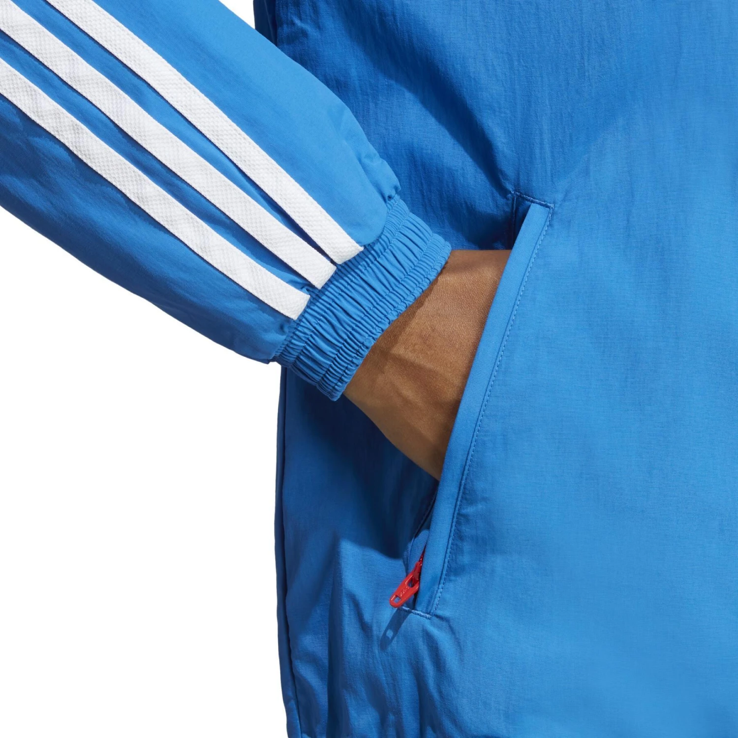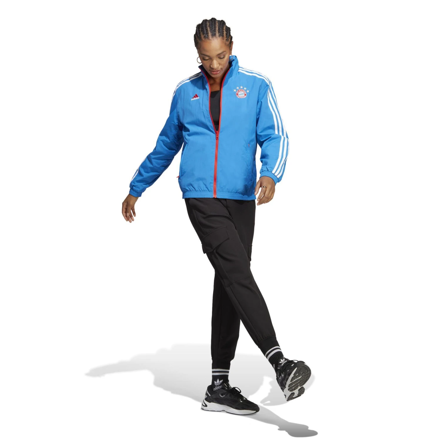 Den FC Bayern zu unterstützen ist nicht verhandelbar, aber Sie können wählen, wie Sie Ihre Hingabe zeigen. Diese Fußballjacke ist eine junior Version des adidas Oberteils, das die Spieler zippen, bevor sie sich in die Warteschlange vor dem Spiel einreihen, und sie ist wendbar. Drehen Sie die Jacke auf links, um die gewagte, von den 90er Jahren inspirierte Grafik zu enthüllen, die das Vorspieltrikot des Vereins hervorhebt. Dieses Produkt wird aus 100 % recycelten Materialien hergestellt und ist nur eine unserer Lösungen, um dem Plastikmüll ein Ende zu setzen. Normaler Schnitt