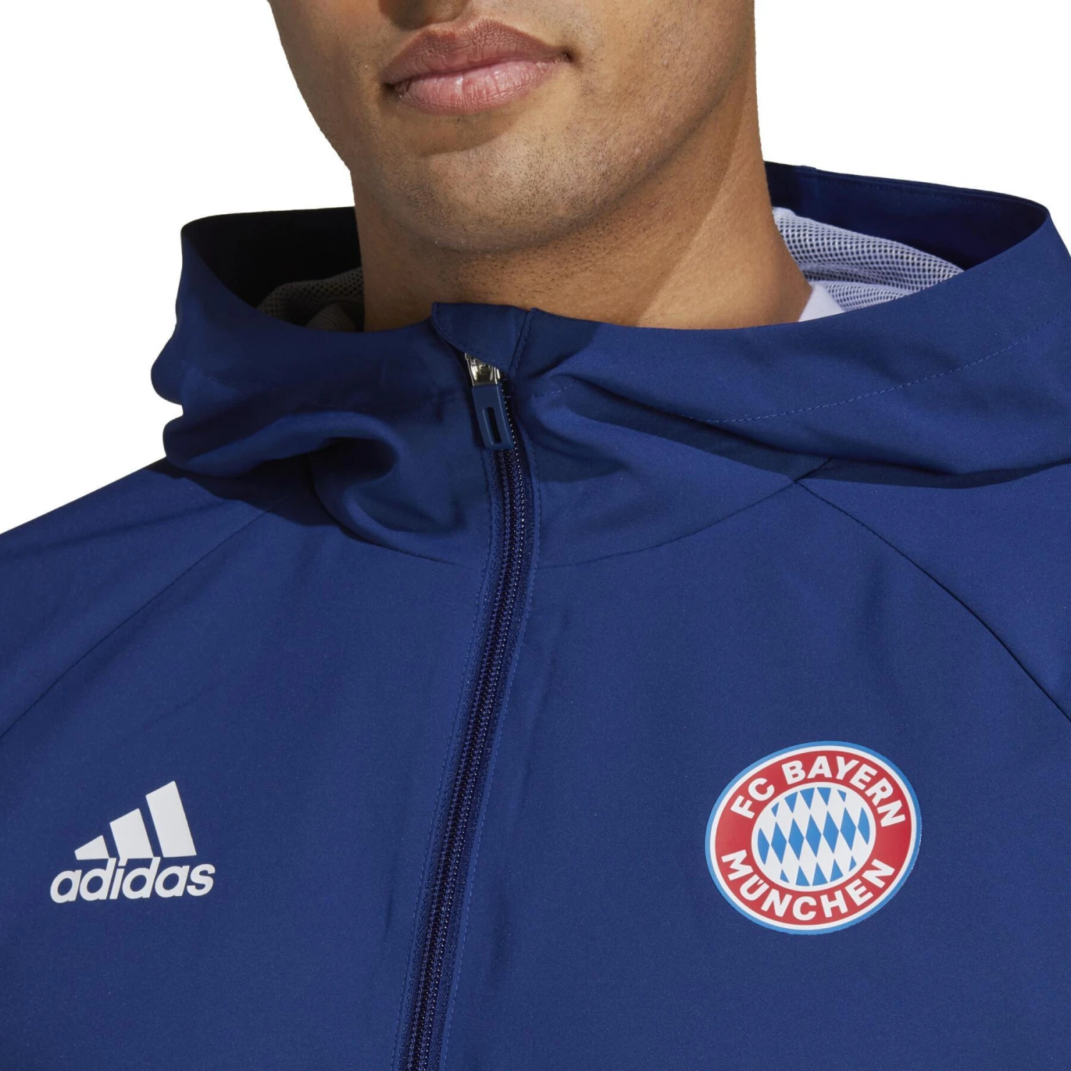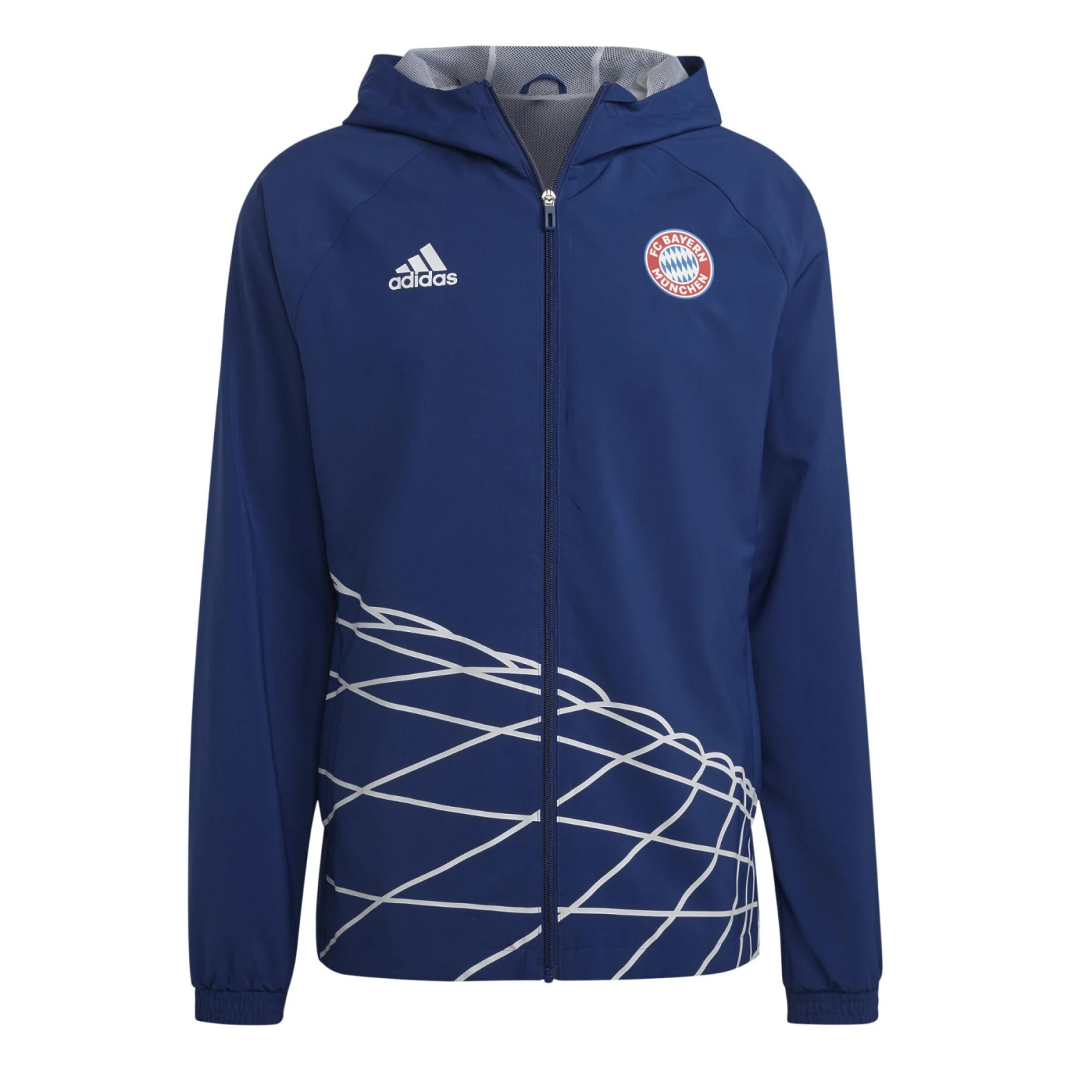 Schützen Sie sich in einer Windjacke adidas, die von der Heimat des FC Bayern inspiriert wurde. Die vertrauten Umrisse der Allianz Arena zeichnen sich auf der Vorderseite dieser eng anliegenden Jacke ab, die eine strapazierfähige, gewebte Konstruktion enthält, die dafür ausgelegt ist, dass Sie sich an einem windigen Tag wohlfühlen. Das Vereinswappen auf der Vorderseite und der große Vereinsname auf dem oberen Rücken lassen keinen Zweifel an Ihrer Fußballzugehörigkeit aufkommen.