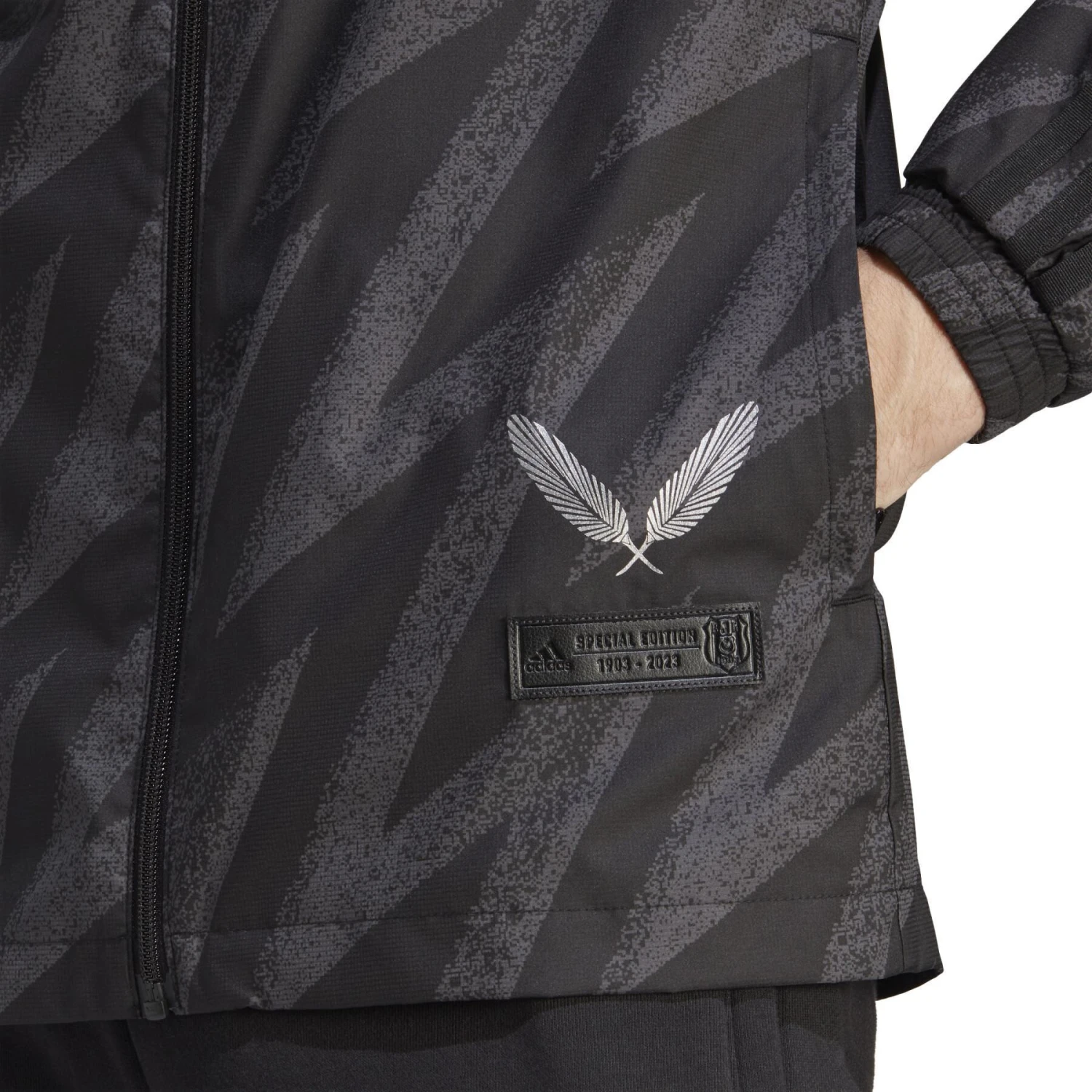 Die Schwarzen Adler ehren den türkischen Fußball seit 120 Jahren. Diese Windjacke adidas Beşiktaş JK feiert daher die trophäenreiche Geschichte des Vereins in einem auffälligen Stil. Auf einer Grafik, die dem dritten Trikot der Jahre 22/23 entlehnt ist, markieren das originale Vereinsabzeichen und die Unterschrift „120 Yil“ dieses Jubiläum. Ein Paar Federn vonaigle über dem Saum ist eine Hommage an ihren berühmten Spitznamen.Hergestellt aus 100% recyceltem Material ist dieses Produkt nur eine unserer Lösungen, um Plastikmüll ein Ende zu bereiten.Regulärer Schnitt