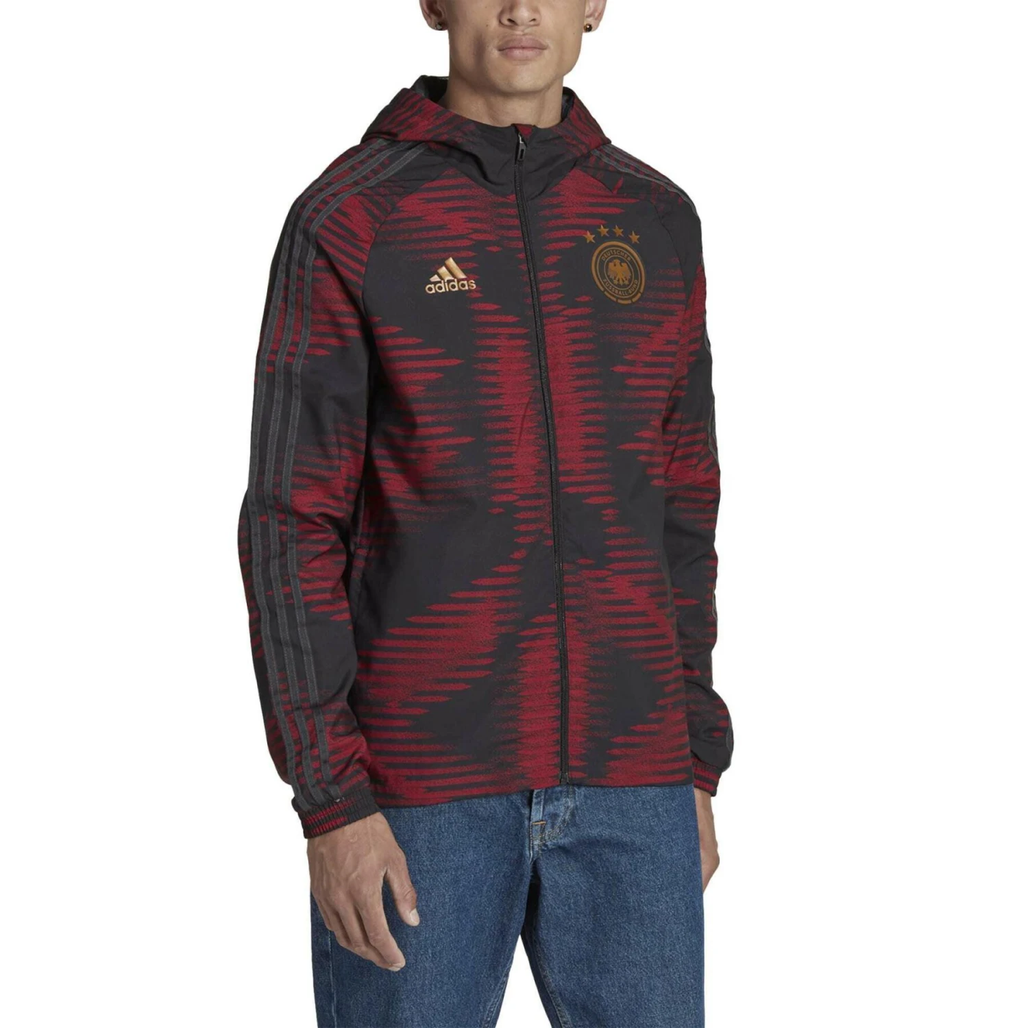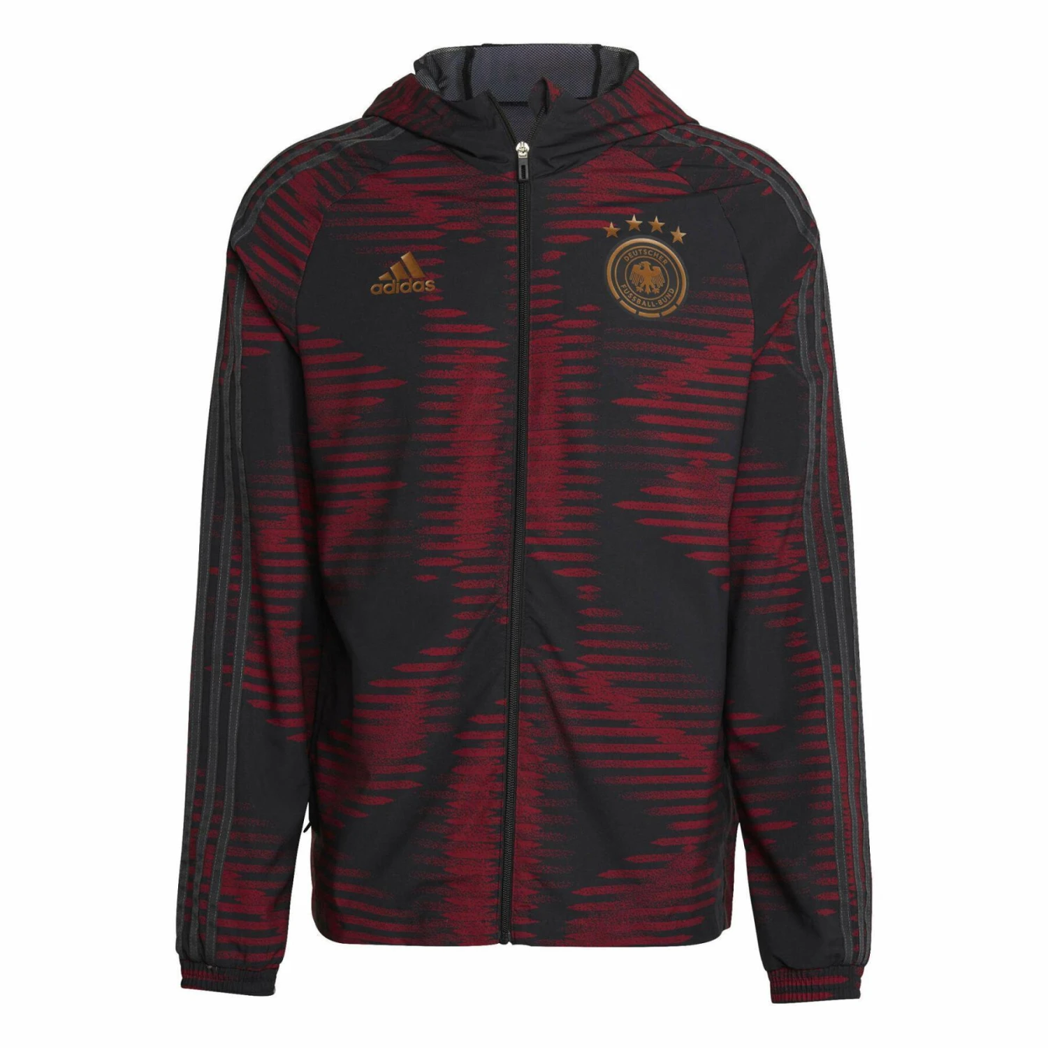 Sei stolz auf deine Mannschaft. Diese Fußball-Windjacke adidas zeigt ein aufgedrucktes deutsches Abzeichen auf einem dynamischen Design, das von der Spielkleidung inspiriert ist. Seine strapazierfähige, gewebte Schale hilft Ihnen, Wind und leichtem Regen zu trotzen. Der eng anliegende Schnitt sorgt für eine stromlinienförmige Silhouette, damit Sie mithalten können, wenn das Leben in die nächste Runde geht.Hergestellt aus 100 % recycelten Materialien, ist dieses Produkt nur eine unserer Lösungen, die dazu beitragen, Plastikmüll ein Ende zu bereiten.Eng anliegender Schnitt