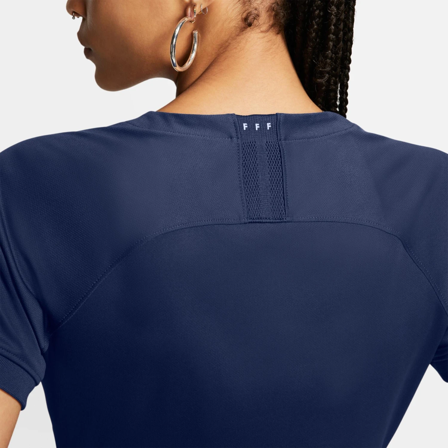 Entdecken Sie dieses France Women’s Home Jersey 2019, das Modell, das während der Frauen-Weltmeisterschaft in Frankreich getragen wird. Dieses Originaltrikot mit V-Ausschnitt ist tailliert geschnitten und hat kurze Ärmel mit der französischen Flagge auf der rechten Seite. Es zeigt auch die FFF-Kokarde und das Nike Swoosh-Logo auf der Brust. Sein schnell trocknendes Nike VaporKnit-Gewebe kombiniert Leichtigkeit, Flexibilität und Atmungsaktivität. Es ist mit strategisch angeordneten, breiten Mesh-Ventilationszonen für zusätzlichen Komfort verstärkt.