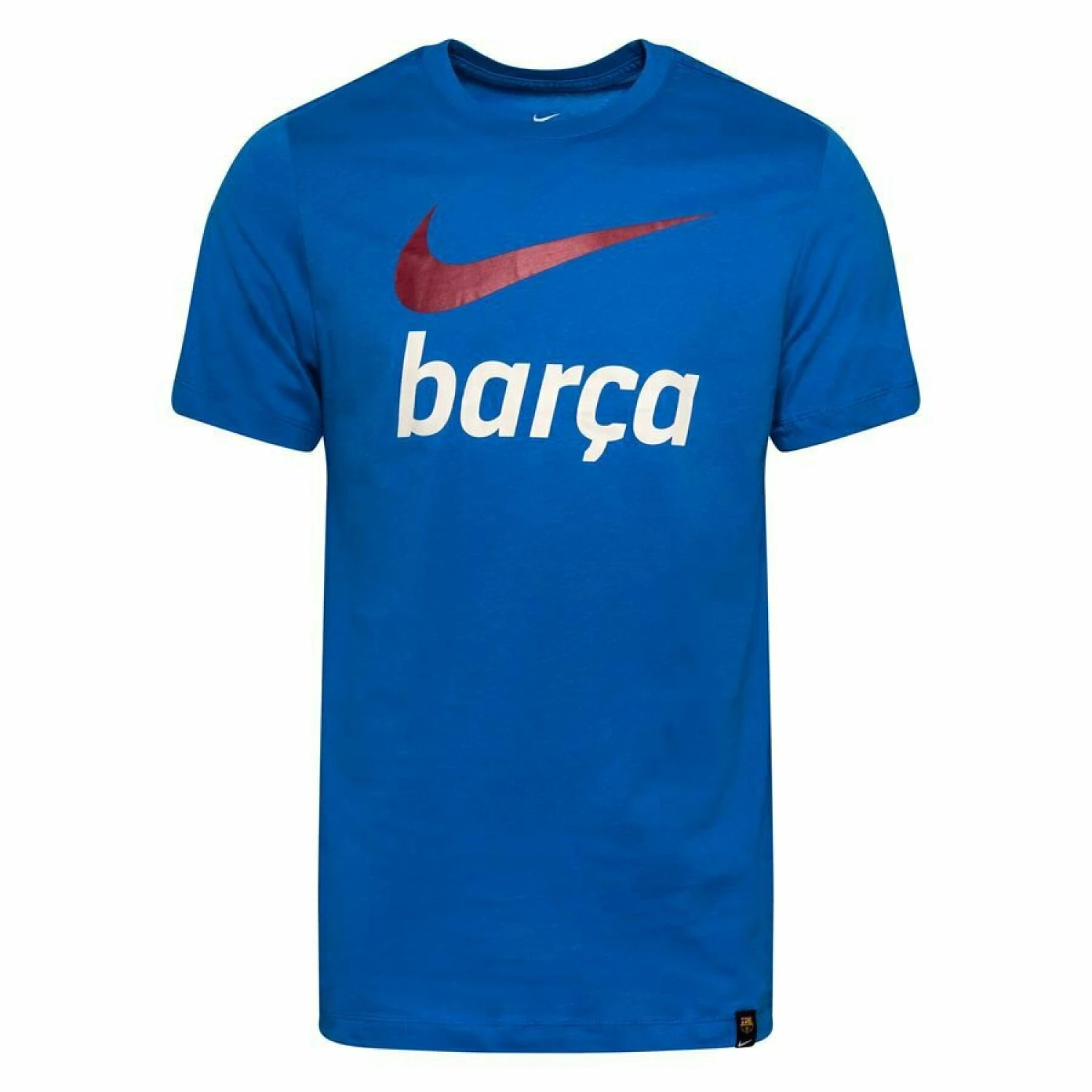 Das FC Barcelona-T-Shirt zeigt Team-Details auf einem weichen Stoff für Komfort auf und neben dem Feld.