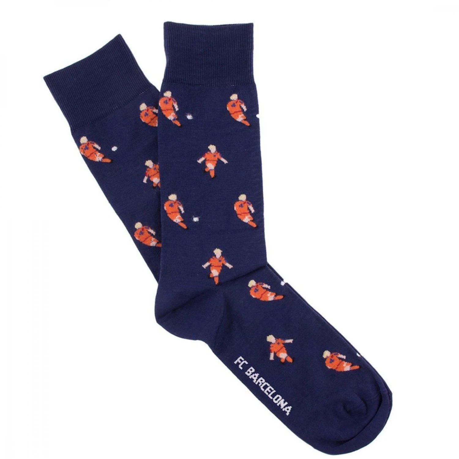 Coole FC Barcelona Socken aus der offiziellen Barcelona Kollektion der Marke COPA Football. Die Socken sind in Marineblau gehalten und haben einen Aufdruck von Ronald Koeman. Auf den Socken ist Koeman in zwei verschiedenen Positionen zu sehen. In der einen schießt er den Ball, der wenige Augenblicke später ins Tor eintaucht. Auf der anderen Seite sieht man Koeman court nach dem Tor aus Freude. Koeman schoss das Siegestor im Finale der Ligue des champions von 1992. Dieses Tor sorgte dafür, dass Barça den Pokal mit den großen Ohren in den Händen halten und mit nach Hause nehmen konnte. Ein wiedererkennbares Bild aus der erfolgreichen Geschichte des spanischen Vereins.