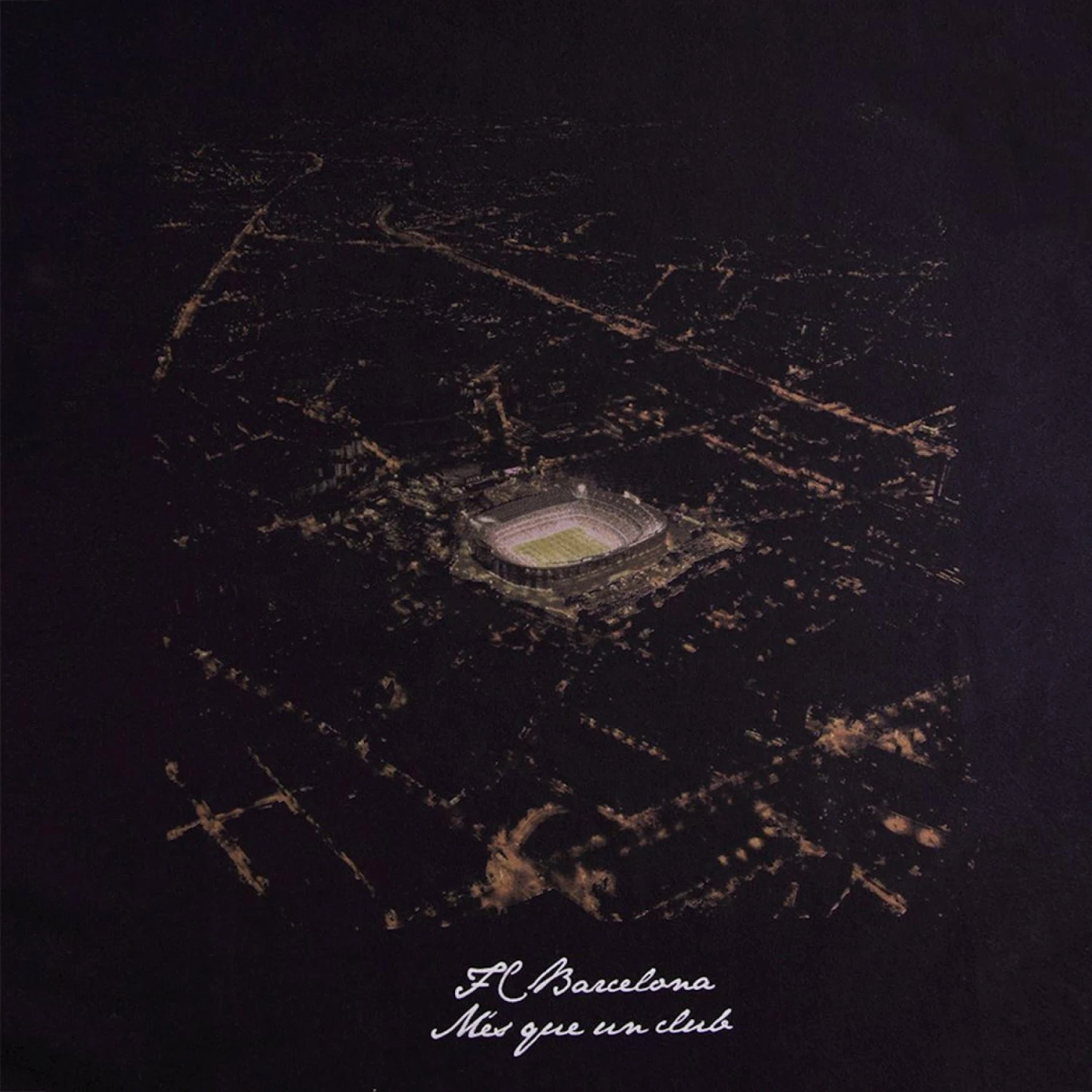 Das Barcelona-T-Shirt by Night wird mit einem wunderschönen Druckbild des legendären Camp Nou-Stadions des Clubs geliefert, das nachts aus der Luft aufgenommen wurde.